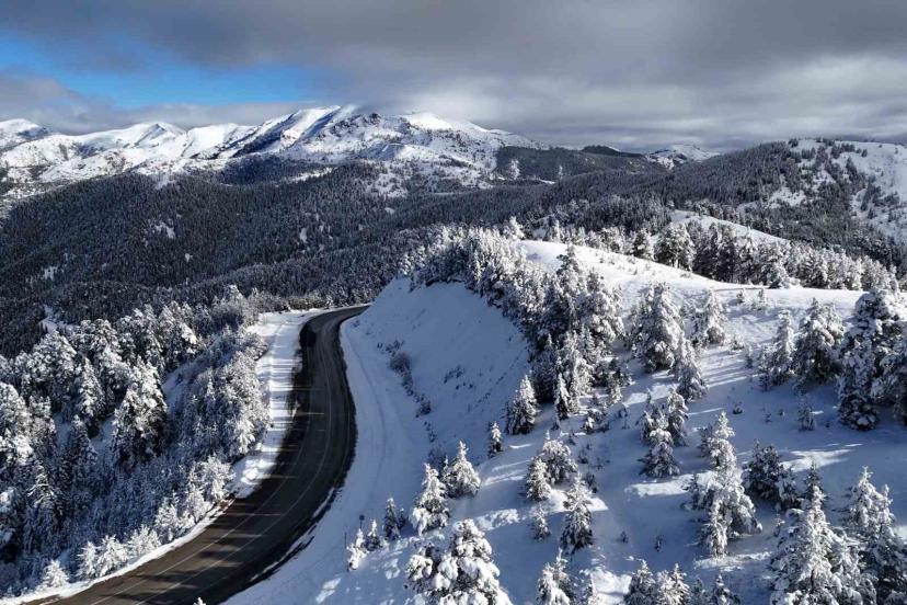 2 bin metre rakımda yer alan geçit, kar yağışının ardından ladin ve çam ormanlarıyla kaplı coğrafyasında seyrine doyumsuz manzaralar meydana getirdi.