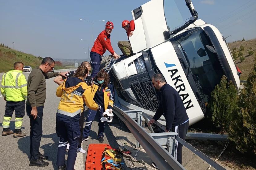 Edinilen bilgilere göre, sürücü V.A.’nın direksiyon hakimiyetini kaybetmesi sonucu İstanbul-İzmir Otoyolu İzmir istikameti Susurluk ilçesi Yahyaköy mevkinde 16 BFZ 459 plakalı çekici ve 16 ALG 191 plakalı dorsenin karıştığı tek taraflı trafik kazası meydana geldi. Kazada sürücü V.A. araç içerisinde sıkıştı.