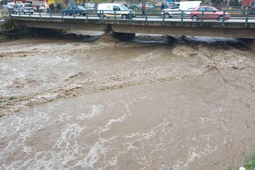Aydın’ın merkez ilçesi Efeler’de etkili olan sağanak yağışın ardından yağmur suları Tabakhane Deresi’ni coştururken, derede su seviyesi yükseldi.