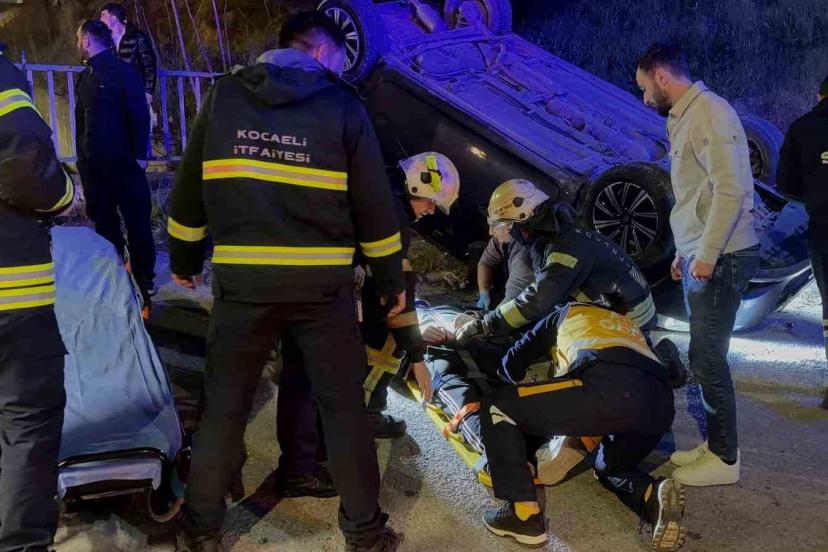Kocaeli’nin İzmit ilçesinde iki otomobilin çarpıştığı kazada kontrolden çıkan araçlardan biri takla attı. Kazada devrilen araçtaki 2 kişi yaralanırken, kazaya karışan diğer aracın sürücüsü olay yerinden kaçtı.