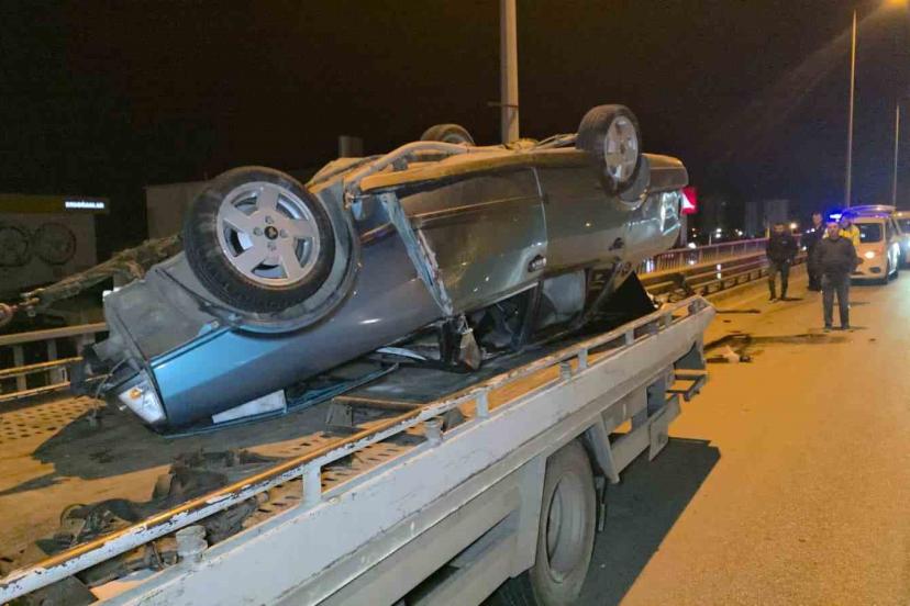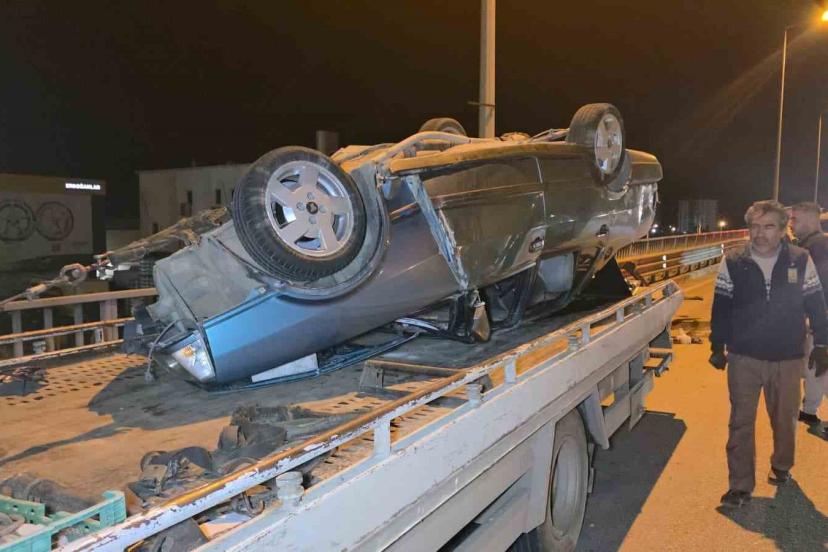Takla atan otomobilden burunları bile kanamadan çıktılar