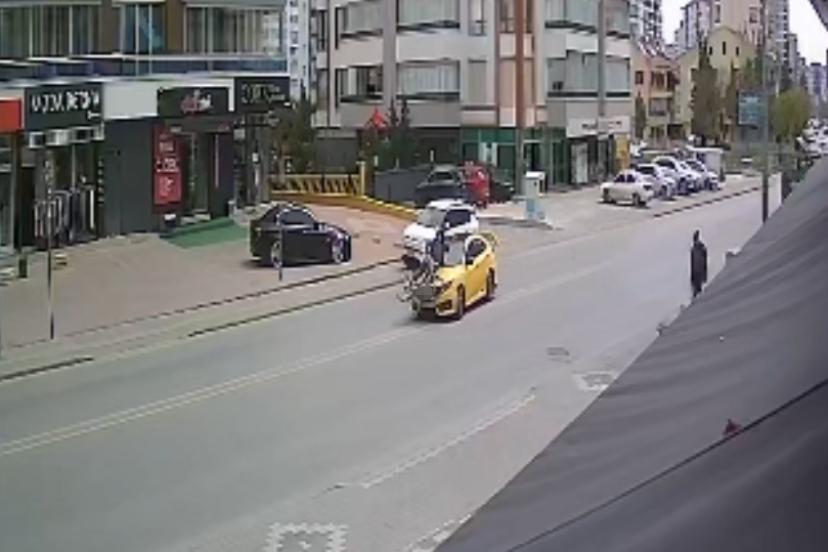 Konya’da yolun karşısına geçmeye çalışan bisiklet sürücüsü taksinin çarpması sonucu yaralandı. Kaza anı ise güvenlik kamerasına yansıdı.