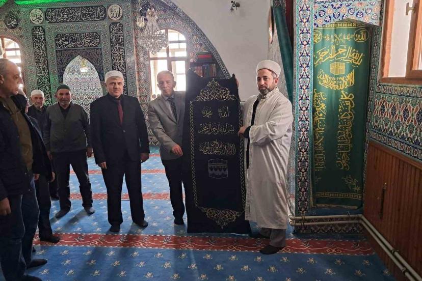 Tarihi Büğdüz Mahalle Camii’nin geleneksel motiflerle işlenen minber örtüsü yenilendi