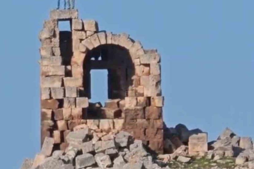 Şanlıurfa’da yaklaşık 2 bin yıllık olduğu belirlenen Nemrut’un Tahtı olarak bilinen Yakup Manastırı’nın kalıntıları üzerinde 2 kişini halay çekmesi cep telefonuna yansıdı.