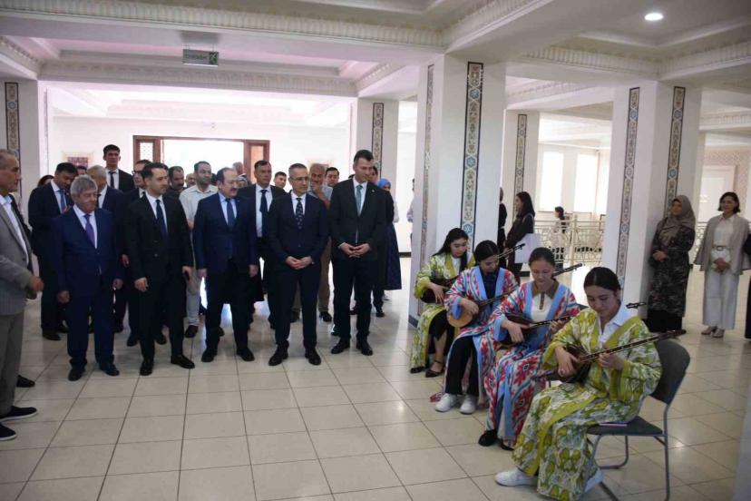 Davetliler, kurdele kesimi sonrası merkezi ve Özbek öğrencilerin hazırladığı tezhip eserlerinden oluşan sergiyi gezdi. Açılışta öğrenciler geleneksel Özbek musikisini de sundu.