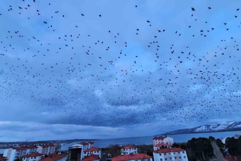 Tatvan ilçe merkezinde görülen doğa olayı sırasında sığırcıkların senkronize uçuşları gökyüzünü adeta kaplarken, ortaya güzel görüntüler çıktı. Gün batımına yakın saatlerde yoğunlaşan kuş sürüsü, kısa süre boyunca ilçe semalarında dalgalı hareketler sergiledi.