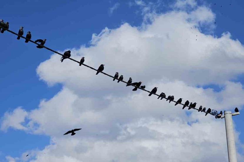 Bitlis’in Tatvan ilçesinde elektrik tellerine sıralanan onlarca kuş, mavi gökyüzü ve beyaz bulutlarla birlikte güzel görüntüler oluşturdu.