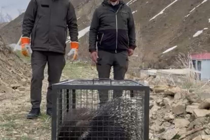 Hakkari’nin Yüksekova ilçesinde yaralı halde bulunan Hint oklu kirpi, Van’daki tedavisinin tamamlanmasının ardından doğal yaşam alanına bırakıldı.