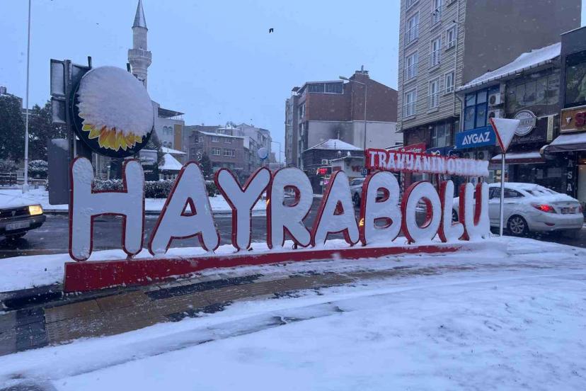 Tekirdağ’ın Hayrabolu ilçesinde kar yağışı etkisini sürdürmeye devam ediyor.