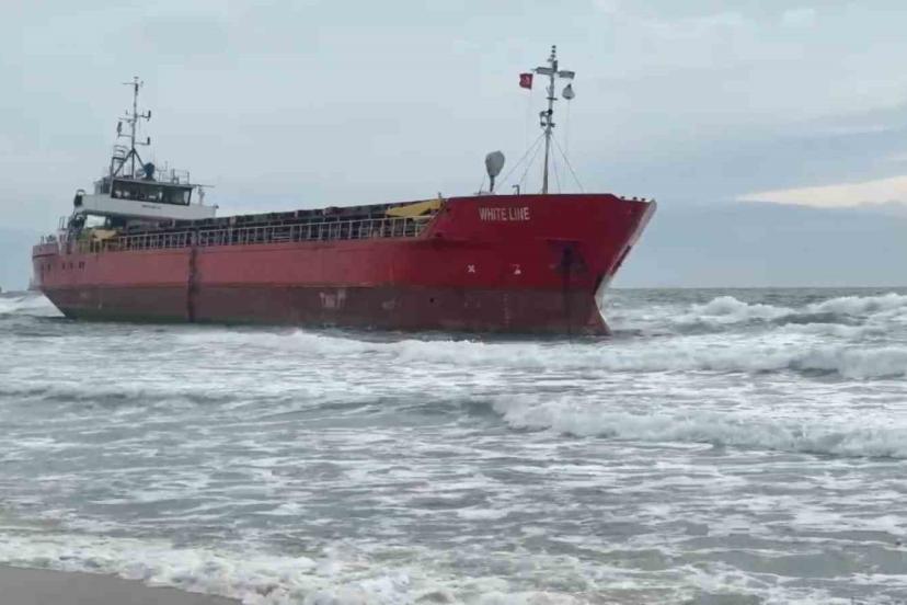 Marmara Denizi’nde etkisini sürdüren kuvvetli rüzgar ve fırtına deniz ulaşımını olumsuz etkilemeye devam ediyor. Cumartesi günü saat 14.30 sıralarında yük almak amacıyla Martaş Limanı’na yanaşmaya çalışan Palau bayraklı "White Line" isimli kuru yük gemisi, olumsuz hava şartları nedeniyle sürüklenerek Santos Plajı açıklarında karaya oturdu.
