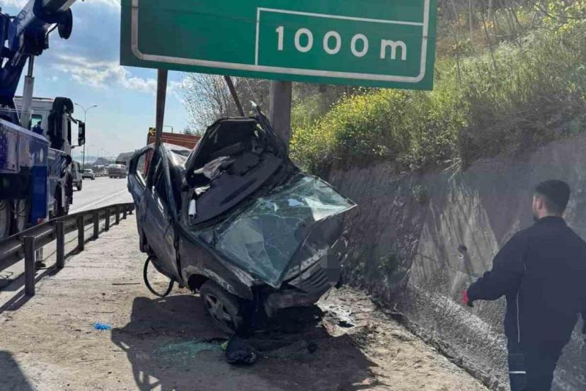 TEM Otoyolu’nun Kocaeli geçişinde kontrolden çıkan otomobilin yön levhasına saplandığı kazada sürücü yaralandı. Hurdaya dönen araç nedeniyle İstanbul istikametinde trafik bir süre aksadı.