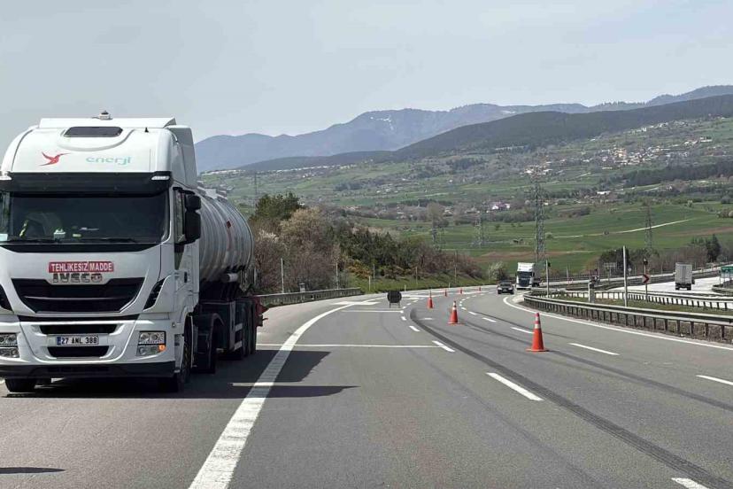 Ankara istikametine ilerleyen C.T. idaresindeki 27 ANL 388 plakalı tankerin bağlı olduğu tırın lastiği, seyir halindeyken henüz belirlenemeyen bir nedenle yerinden çıkarak yola savruldu. Bu sırada aynı istikamette orta şeritte seyreden Ali Hasanoğlu yönetimindeki 52 PA 330 plakalı kamyon, yola düşen lastiğe çarptı. Çarpmanın şiddetiyle lastiği altına alarak metrelerce sürükleyen kamyonda hasar oluştu. Sürücülerin yara almadan atlattığı kazanın ardından bölgeye sevk edilen kara yolları ve polis ekipleri, yolda güvenlik önlemi aldı. Kamyon, çağrılan çekici yardımıyla bulunduğu yerden kaldırıldı. Kazanın ardından yaşadığı paniği anlatan kamyon sürücüsü Hasanoğlu, "Kendi şeridimde ilerlediğim sırada önümdeki tırın lastiği fırladı. Lastiği önüme alıp buraya kadar sürükledim" ifadelerini kullandı.