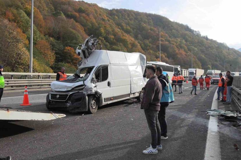 Kaza, TEM Otoyolu’nun Bolu Dağı Tüneli çıkışında 2. Viyadük mevkiinde meydana geldi. İstanbul istikametinde seyreden F.K. idaresindeki 80 DB 789 plakalı tır, C.A. yönetimindeki 44 AHG 684 plakalı yolcu otobüsü ile çarpıştı. Aynı istikamette seyreden A.Y. hakimiyetindeki 34 GZK 273 plakalı panelvan da kazaya karıştı. Meydana gelen kazada panelvan otoyolda devrildi. Yan yatan araç içerisindeki sürücü A.Y. yaralandı. 112 Acil Çağrı Merkezi’ne yapılan ihbar üzerine bölgeye sağlık, jandarma ve itfaiye ekipleri sevk edildi.
