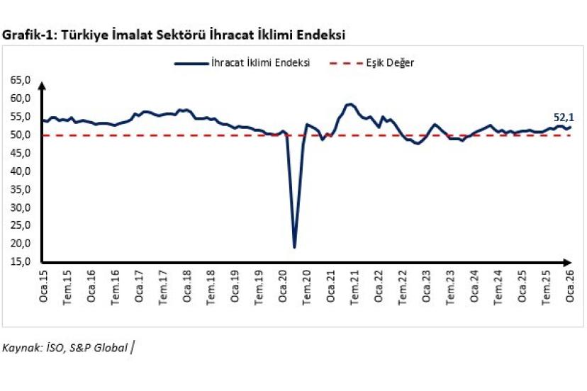 Ticaret Bakanı Ömer Bolat, İstanbul Sanayi Odası (İSO) Türkiye İmalat Sektörü İhracat İklimi Endeksi’nin, Aralık 2025’teki 51,6 seviyesinden Ocak 2026’da 52,1’e yükseldiğini açıkladı.