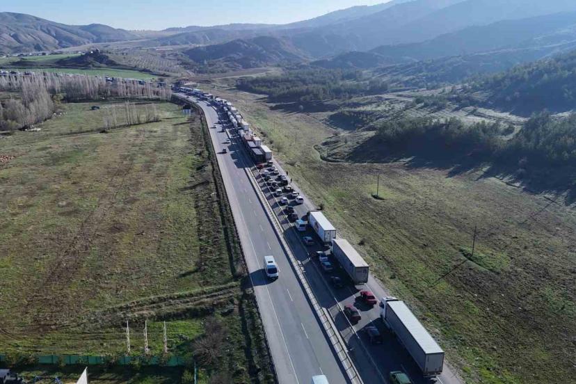 Tır devrildi, Kayseri-Sivas yolunda uzun araç kuyruğu oluştu