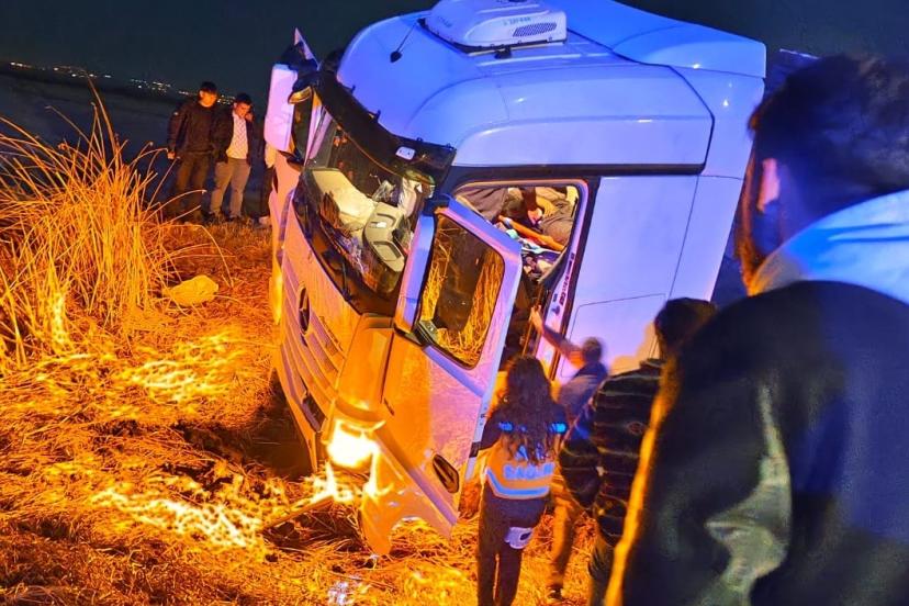 Tır tarlaya uçtu: 2 yaralı