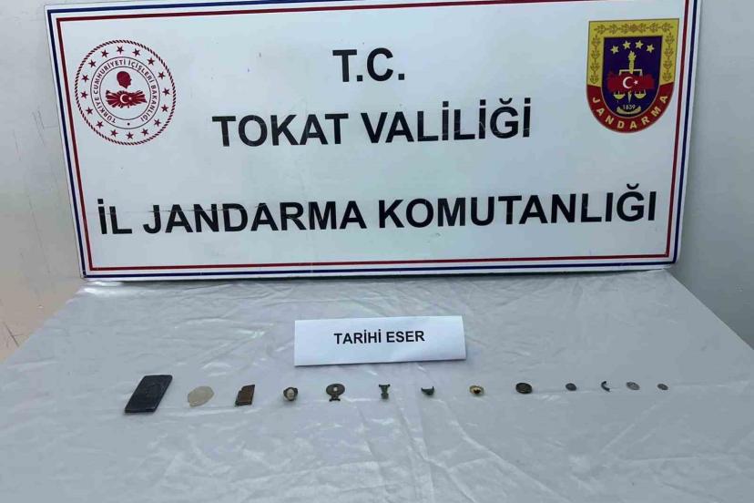 Edinilen bilgilere göre, ihbar üzerine teknik takip başlatan Tokat İl Jandarma Komutanlığı ekipleri polis bölgesi olan Alipaşa Mahallesi’nde ikamet eden Kayhan Ç.’nin evinde tarihi eser olduğunu belirledi. Tokat İl Emniyet Müdürlüğü ekipleri ile koordineli yürütülen operasyonda K.Ç.’nin ev ve eklentilerinde adli arama gerçekleştirildi. Yapılan aramada, tarihi eser niteliğinde olduğu değerlendirilen 13 parça obje ele geçirildi.