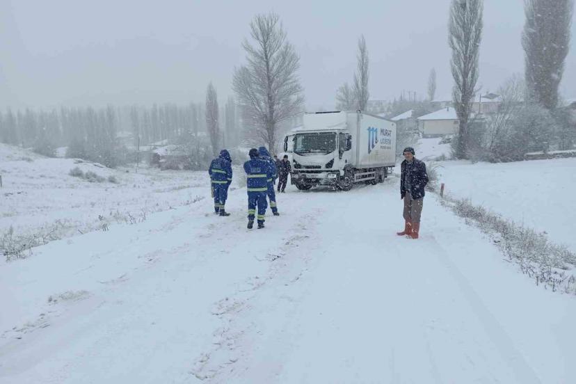 Tokat’ın Sulusaray ile Yeşilyurt ilçelerinde yoğun kar yağışı nedeniyle ağır tonajlı araçlar yolda kaldı, sürücüler zincir takarak ilerlemeye çalıştı.