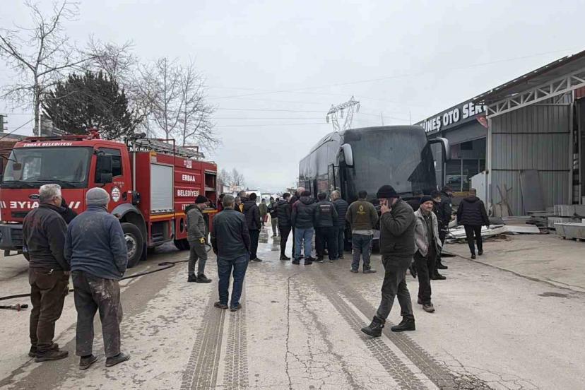 Tokat’ın Erbaa ilçesinde Küçük Sanayi Sitesi içerisinde park halinde bulunan bir otobüs, çıkan yangında kullanılamaz hale geldi.