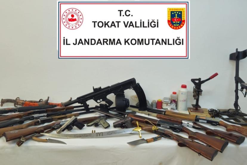 Edinilen bilgilere göre Tokat İl Jandarma Komutanlığı ekipleri, ilçede bazı şahısların tarihi eser ve silah kaçakçılığı yaptığı yönünde elde edilen istihbarat üzerine çalışma başlattı. Yürütülen teknik ve fiziki takibin ardından adli makamlardan alınan arama kararına istinaden 6 farklı adrese eş zamanlı operasyon düzenlendi. Operasyon kapsamında yapılan aramalarda; 11 adet ruhsatsız av tüfeği, 2 adet kurusıkı tabanca, 1 adet kurusıkıdan bozma tabanca, 2 adet 9x19 mm fişek, 1 adet kılıç, 3 adet kama, 1 adet dedektör, 1 adet barut tartımında kullanılan hassas terazi, 1 adet fişek kapsülü basma makinesi, 230 adet fişek kapsülü ile 680 gram barut ele geçirildi. Olayla ilgili olarak Ö.K., M.K., K.Ş., R.S., M.Ö. ve O.S. isimli şüpheliler gözaltına alındı. Jandarmadaki işlemlerinin ardından ifadeleri alınan şüpheliler serbest bırakılırken, olayla ilgili inceleme başlatıldı.