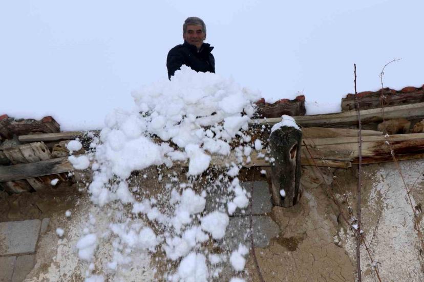 Kışın yüksek kesimlerde zor geçtiğini belirten Ali Demir, "Evin damı kardan dolayı akmasın diye küreme işi yapıyorum. Maddi durumumuz iyi olmadığı için mecburen toprak damlı evde yaşıyoruz. Böyle olunca da her kış bacalardaki karı sürekli kürüyoruz" dedi.