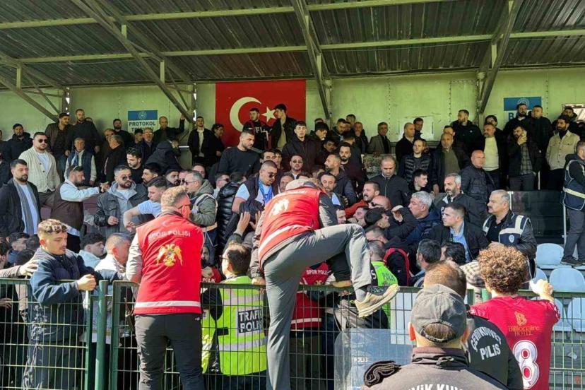 Öte yandan büyük çekişmeye sahne olan karşılaşma sonrası Faroz Yalısporlu taraftarların bulunduğu tribünde kavga çıkarken, kavgaya polis ekipleri müdahale etti.