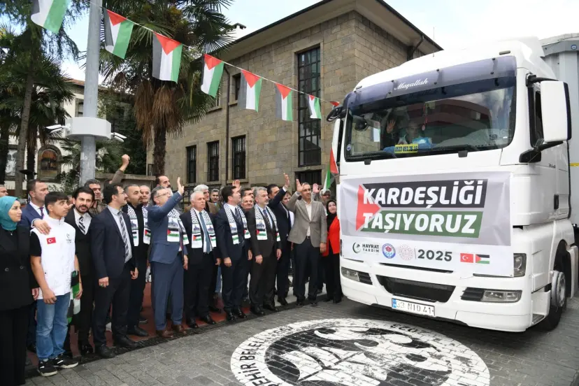 Trabzon Büyükşehir Belediyesi, Hayrat İnsani Yardım Derneği ve İl Milli Eğitim Müdürlüğü iş birliğiyle toplanan 250 ton insani yardım malzemesi, 10 TIR'dan oluşan konvoyla Gazze'ye ulaştırılmak üzere yola çıktı. Kahramanmaraş Caddesi'nde düzenlenen yardım konvoyunu uğurlama törenine, Vali Aziz Yıldırım, Büyükşehir Belediye Başkanı Ahmet Metin Genç ve Hayrat İnsani Yardım Derneği yöneticilerinin yanı sıra, ilçe belediye başkanları, siyasi parti ve sivil toplum kuruluşlarının temsilcileri, kurum müdürleri, öğrenciler ile çok sayıda vatandaş katıldı.