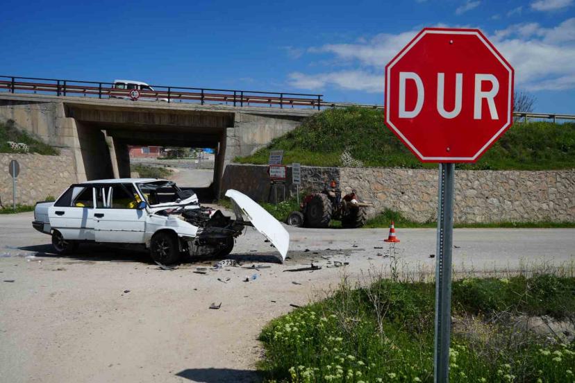 Traktör ile otomobil kafa kafaya çarpıştı: 5 yaralı