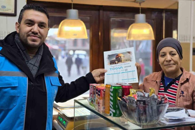 TÜGVA Eskişehir gönüllüleri, esnafa imsakiye dağıtarak Ramazan ayının manevi iklimini paylaştı.