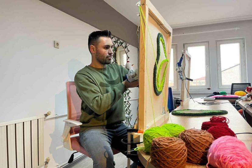 Eskişehir’de yaşayan 32 yaşındaki girişimci bütün birikimi ile açtığı tufting isimli halı dokuma atölyesinde gelen vatandaşlar hem bu zanaatı öğreniyor hem de hayallerindeki figürleri kumaşa döküyor.
