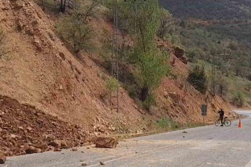 Tunceli’de yamaçtan kopan taş ve toprak kütlesi yola düştü