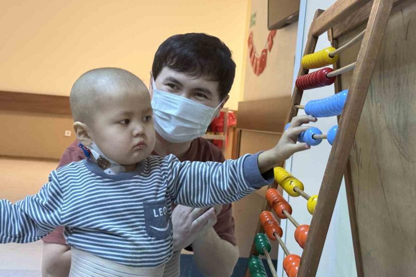 Üç yaşındaki Kırgız çocuk Nuryiğit Maksatbekoğlu, Malatya İnönü Üniversitesi Turgut Özal Tıp Merkezi’nde gerçekleştirilen ka...