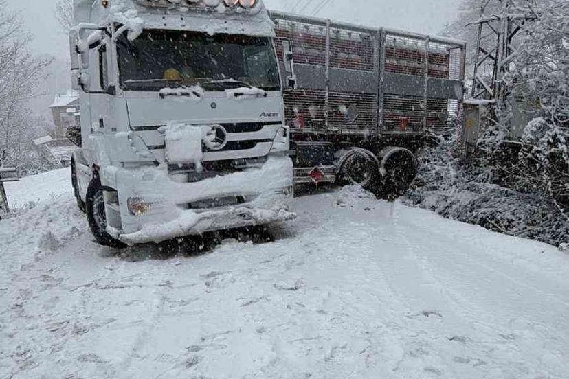 Sinop’un Türkeli ilçesinde etkili olan yoğun kar yağışı yaşamı olumsuz etkilemeye devam ediyor. Türkeli-Ayancık karayolunun Düz köyü mevkiinde doğalgaz tırının kar nedeniyle kayması sonucu yol ulaşıma kapandı.