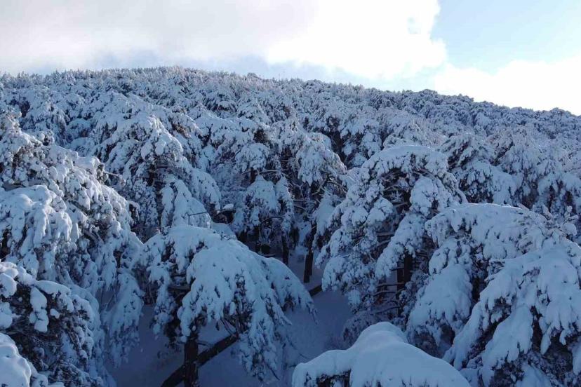 Türkiye’nin ilk Milli Parkı Çamlık’ta kar manzarası havadan görüntülendi