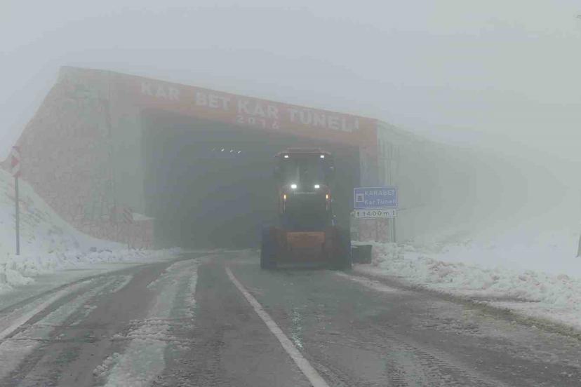 Türkiye’nin en yüksek geçitlerinden biri olan ve zorlu kış şartlarıyla bilinen 3 bin rakımlı Karabet Geçidi’nde, Karayolları ...