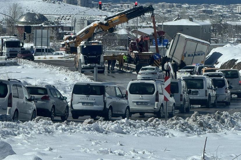 Tuşba’da tır kazasında uzun araç kuyruğu oluştu
