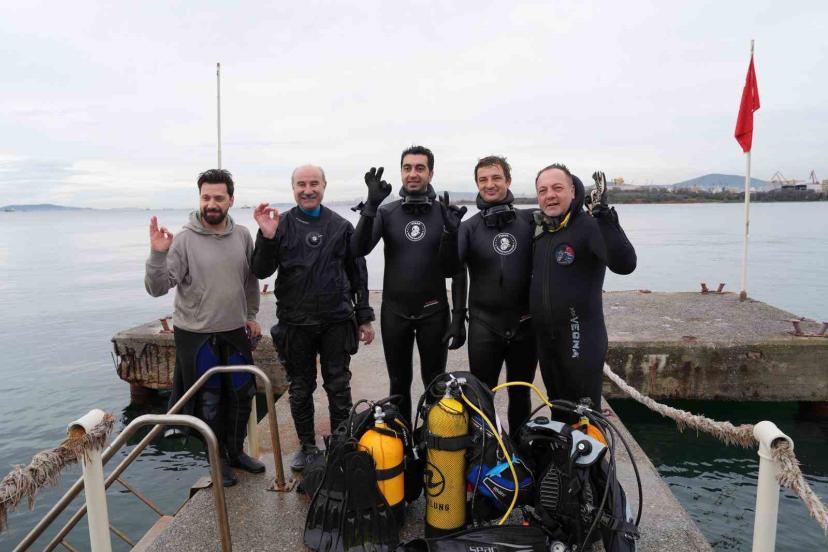 Tuzla Yelken ve Su Sporları Kulübü kıyısından dalan; Prof. Dr. Mustafa Sarı ve Tuzla Belediye Başkanı Av. Eren Ali Bingöl, Gökhan Karakaş, Fırat Gökçen’i su altı fotoğrafçısı Serdar Avcı görüntüledi.