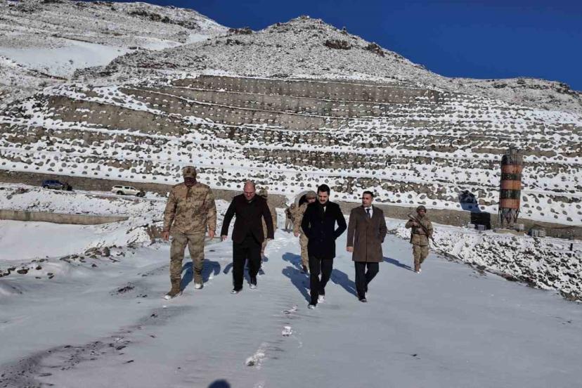 Tuzluca Kaymakamı Abdüllatif Yılmaz, Kaymakam Adayı Eftal Palabıyık ile birlikte ilçede yapımı devam eden Ünlendi Barajı inşaat alanında incelemelerde bulundu.