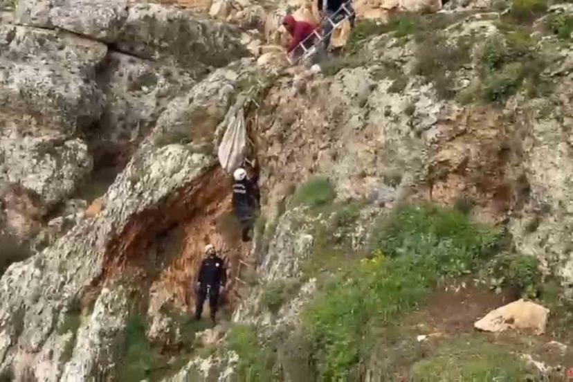 Uçurumdan düşen köpek 4 saatlik çalışmayla kurtarıldı