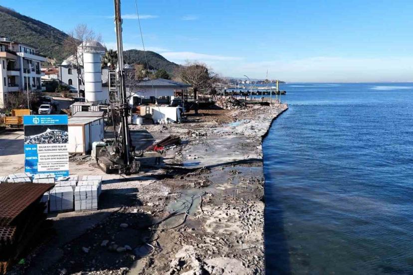 Gölcük Ulaşlı Sahili’nde deniz taşkınlarına karşı 550 metre uzunluğunda dalga kırıcı set inşasında önemli ilerleme sağlandı.