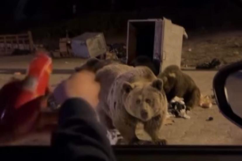 Bursa’da kış uykusuna yatmayan ayılar, Uludağ’da yerleşim yerlerine inerek çöp konteynerlerini karıştırırken görüntülendi. Milli Park yetkilileri de hayvanlara her gün yiyecek bırakıp karınlarını doyuruyor. Ancak bazı vatandaşlar ayı ailesinin yanına gelip yiyecek verirken tehlikeli anlar yaşıyor. Sucuk ziyafeti çektiği anne ayının gazabına uğrayan bir maceracı o anları kayda aldı. Ayının arabaya saldırdığı anlar yürekleri ağıza getirdi.