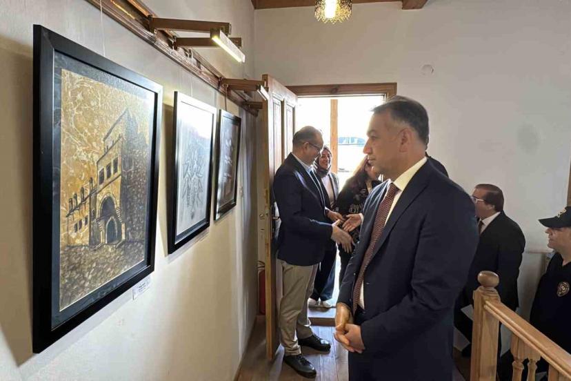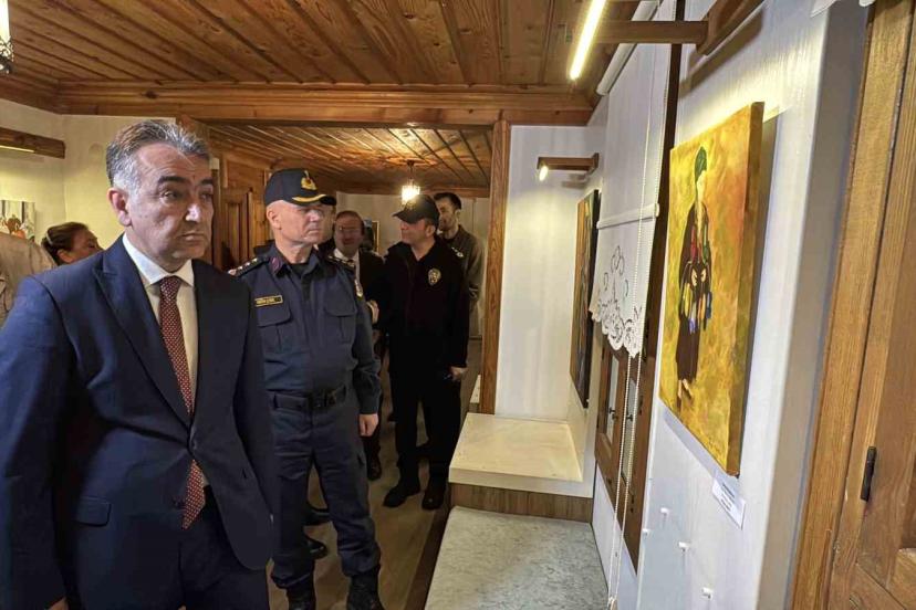 Halk oyunları gösterisinin ardından protokol üyeleri açılışını yaptıklarını resim sergisini gezdi.