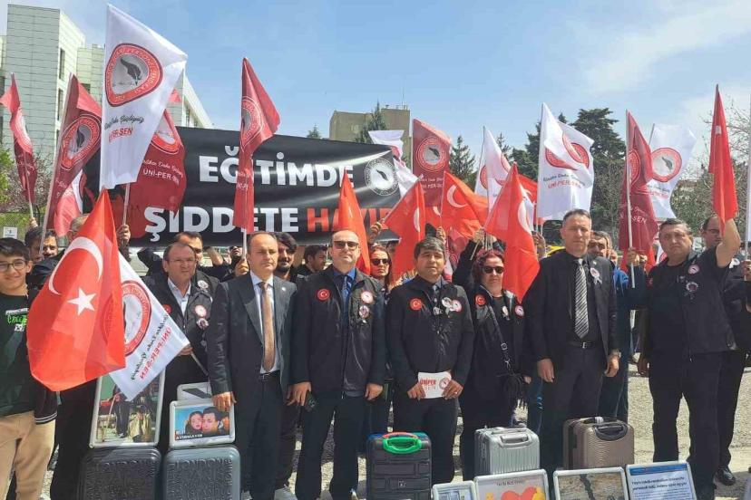 ÜNİPERSEN, kuruluş yıl dönümü kapsamında planlanan kutlama programını son günlerde yaşanan liselere saldırı düzenlenmesi nedeniyle iptal ederek, eğitimde şiddet ve üniversite çalışanlarının sorunlarına dikkat çekmek amacıyla Yükseköğretim Kurulu (YÖK) önünde basın açıklaması gerçekleştirdi. Bir günlüğüne iş bırakan üyeler, pankartlar açarak valiz ve konuyla bağlantılı fotoğraflar dizdi. ÜNİPERSEN üyeleri, YÖK önünde bir araya gelerek eğitim kurumlarında artan şiddet olaylarına tepki gösterdi.