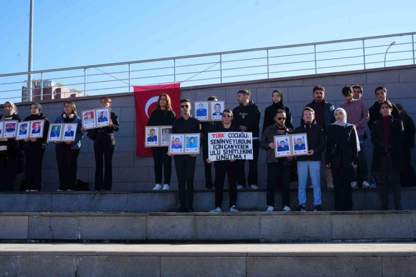 Anma programına katılanlar adına konuşan Kastamonu Üniversitesi öğrencisi Kübra Yegül, "Bu acının üzerinden henüz 48 saat geçmemişken 13 Kasım’da daha önceki şehitlerimizin cenazeleri bile ülkemize gelmemişken bu kez Hırvatistan’da yangın söndürme uçağımız düştü ve bir pilotumuz şehit düştü. Milletimiz şehitlerinin yasını bile tutamadan 15 Kasım’da Manisa’da polis aracının tıra çarpması sonucu bir polisimiz daha şehit oldu. Bu toprakların bedeli her gün tekrar tekrar ödeniyor. Kahramanlarımızın ruhu şad olsun. Bizler burada sadece şehitlerimizi anmak için değil, onların aziz hatıralarını unutturmamak, bu milletin evlatlarının değerini hatırlatmak için bulunan buradaki vatansever öğrencileriz. Burada yaptığımız anma töreninde hiçbir slogan atılmayacak, hiçbir marş ya da ant söylenmeyecek, hiçbir alkış yapılmayacak. Çünkü bugün gösterişin değil, sessiz ama gür bir duruşun günüdür" dedi.