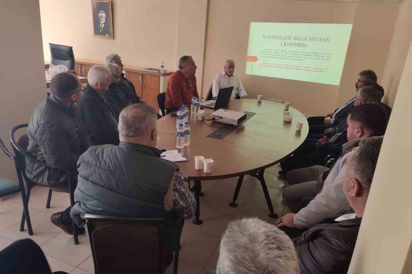 Uşak İl Tarım ve Orman Müdürlüğü’nce Eşme Ziraat Odası’nda düzenlenen toplantıda, kooperatiflerin kayıt, izleme ve yönetim süreçlerinin dijital ortamda daha etkin yürütülmesini sağlayan KOPBİS sistemi hakkında bilgilendirmeler yapıldı, karşılaşılan sorunlar ve çözüm önerileri ele alındı.