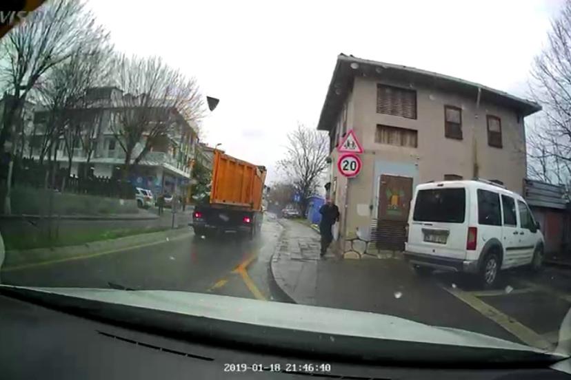 Üsküdar’da hafriyat kamyonunun açılan damper kapağı yayaya ve araçlara çarptı