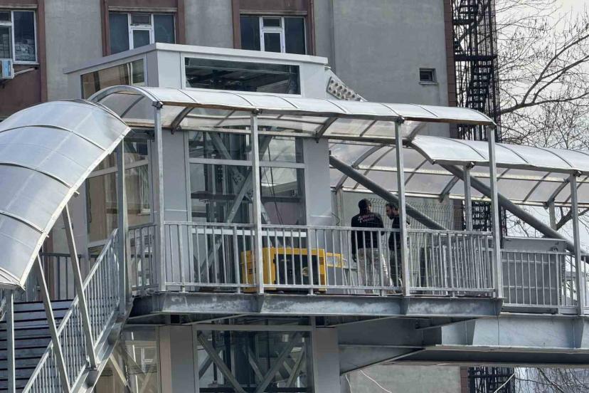 Zonguldak’ta çevre yolundaki üst geçitte asansör montalama işleminde sona gelindi.