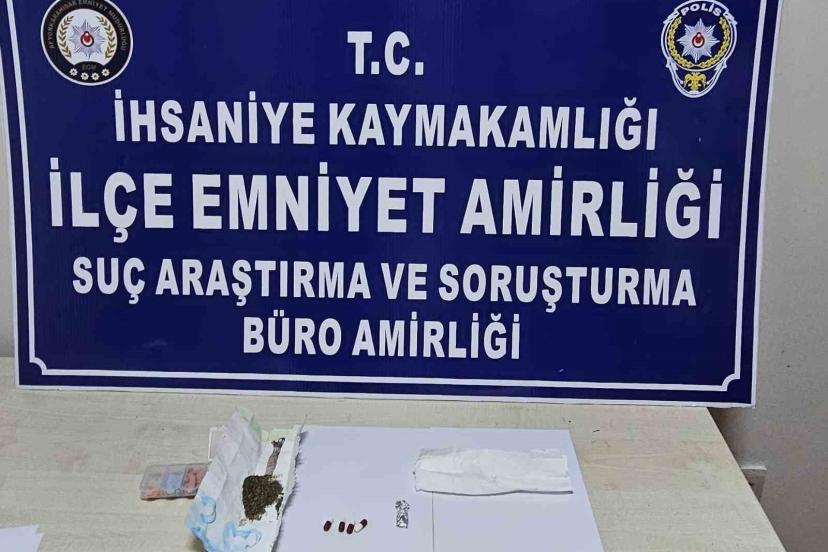 İhsaniye İlçe Emniyet Müdürlüğüne bağlı ekipler tarafından uyuşturucu ve uyarıcı madde satıcı ve kullanıcılarına yönelik yapılan çalışmada takibe alınan bir araç durdurularak arama yapıldı. Aramada