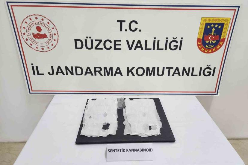 Düzce Cumhuriyet Başsavcılığı koordinesinde İl Jandarma Komutanlığı Narkotik Suçlarla Mücadele Müdürlüğü ekiplerinin yaptığı çalışmada, E.A. isimli şahsın, İstanbul ilinden Düzce’ye uyuşturucu madde getirdiği bilgisi alındı. Yapılan çalışmalarda E.A., Anadolu Otoyolu üzerinde bulunan bir dinlenme tesisinde yakalandı. Şahsın üzerinde yapılan aramada giymiş olduğu ayakkabı tabanlığına gizlenmiş vaziyette 40x60 santimetre boyutunda peçeteye emdirilmiş 2 bin 600 içimlik sentetik kannabinoid maddesi olduğu değerlendirilen, piyasa değeri yaklaşık 2 milyon 600 bin lira olan uyuşturucu madde ele geçirildi. E.A. isimli şüpheli, idrar örneği alınmasına müteakip gözaltına alındı. Olayla ilgili olarak geniş çaplı soruşturma başlatıldı.