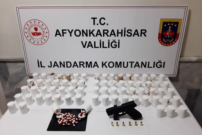 Afyonkarahisar’da Jandarma tarafından gerçekleştirilen operasyonda 3 bin 692 uyuşturucu hap ve tabanca ile yakalanan şahıs tutuklandı.